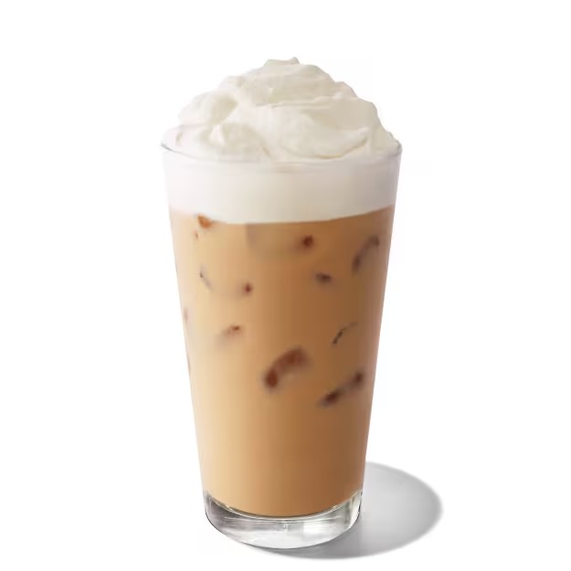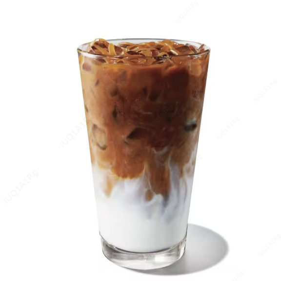 Leite com um toque de baunilha, espresso e gelo.