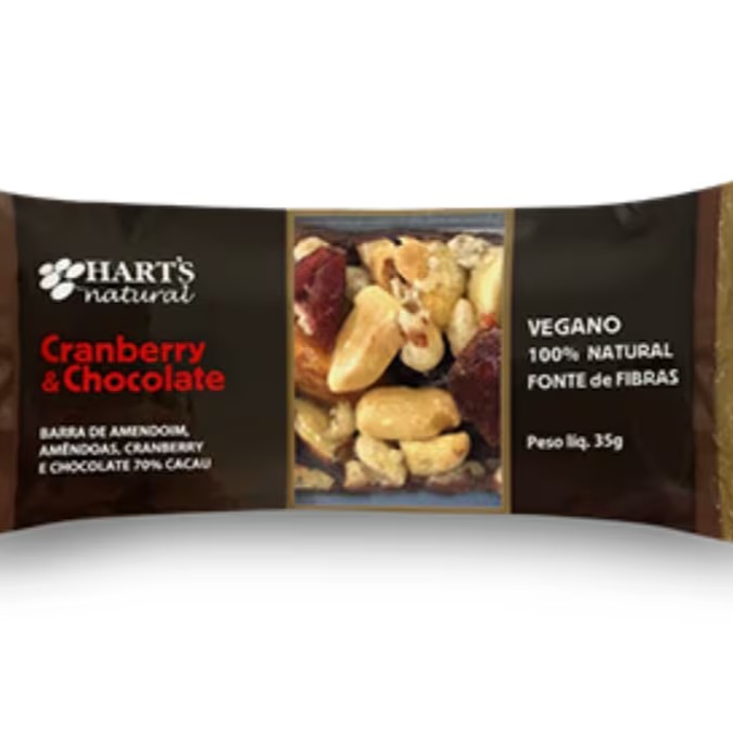Barra de amendoim, amêndoas, cramberry e chocolate 70% cacau.