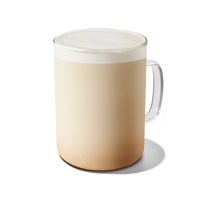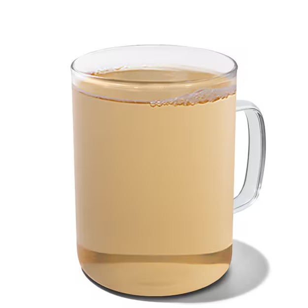 Feito com leite vaporizado, concentrado de Chai e água quente.