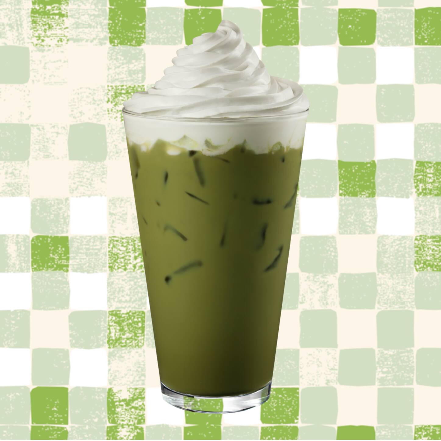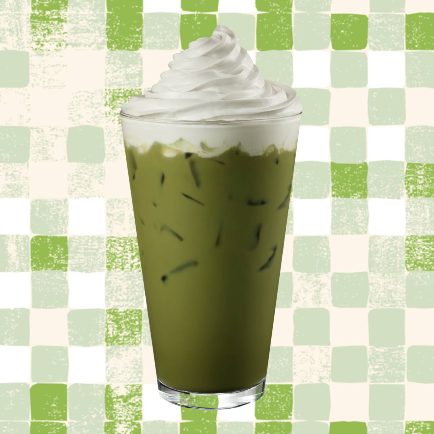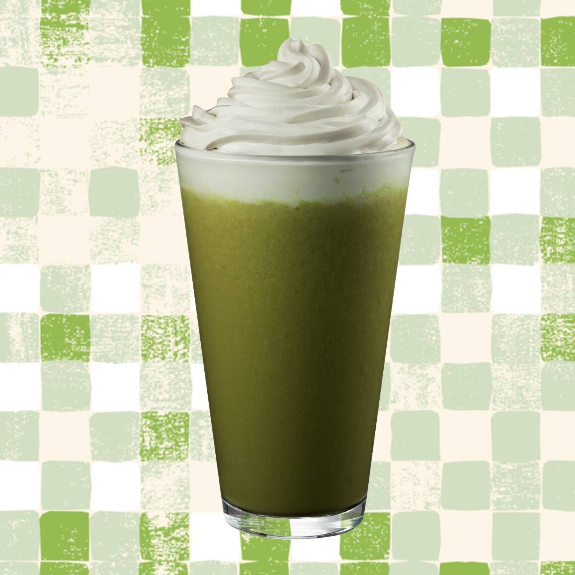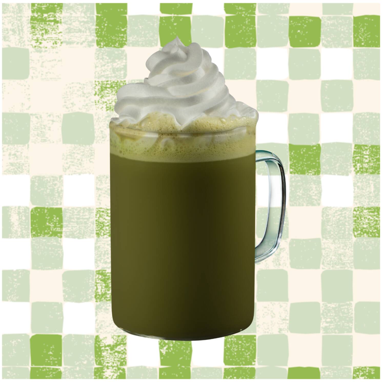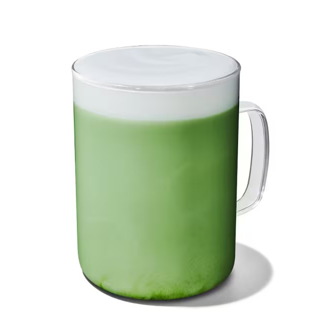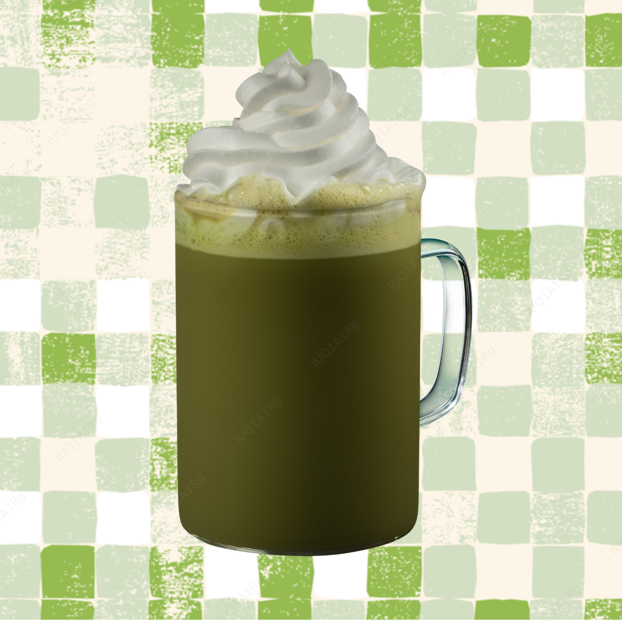 Feito com leite vaporizado, Matchá, levemente adocicado.
