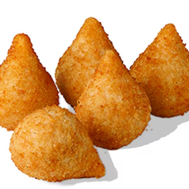 Porção com 5 unidades de coxinha de frango desfiado e requeijão