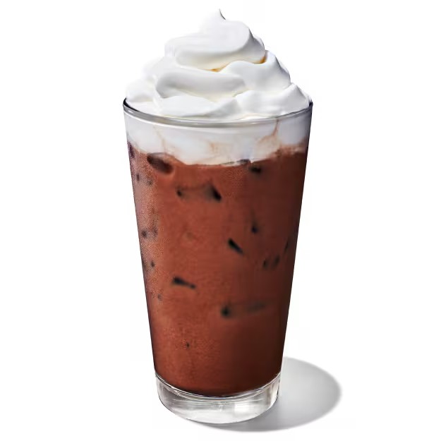 Leite vaporizado, calda de chocolate, café espresso gelo e um toque de chantilly.