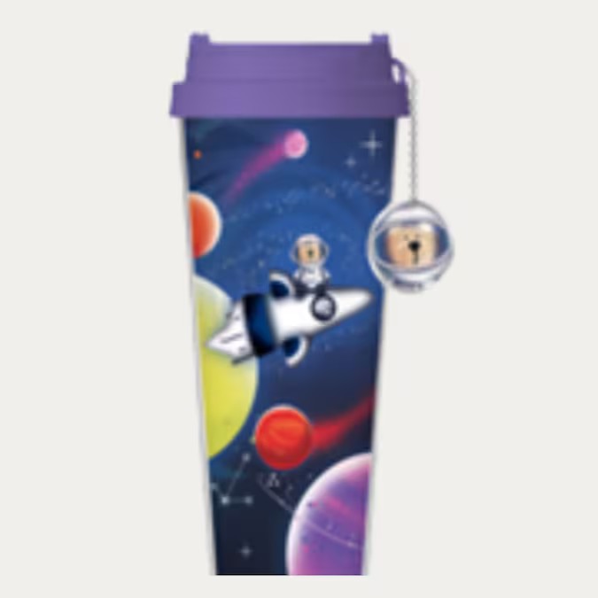 Copo com tampa feito de plástico com chaveiro - 473ml