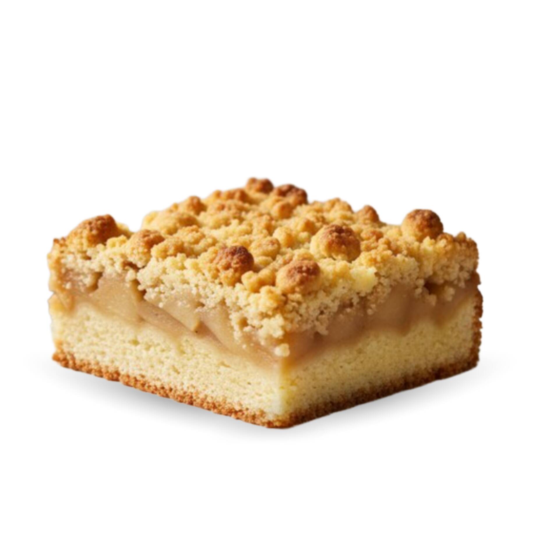 A clássica massa de bolo doce e macio coberta com maçãs e uma farofa crocante.