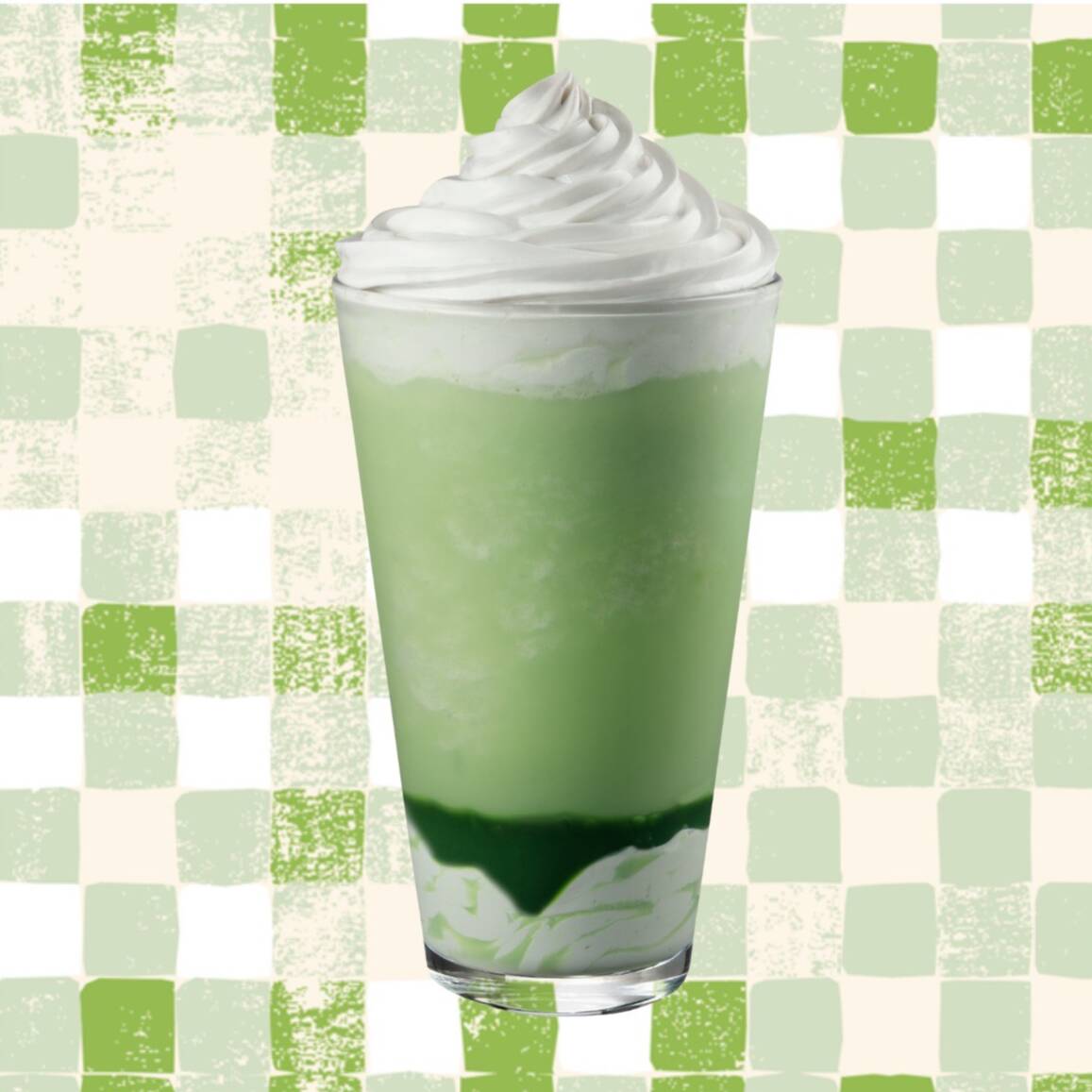 "Frappuccino na base café, leite, xarope de pistache e gelo batido, servido sobre chantilly e calda de pistache. Finalizado com chantilly de baunilha.