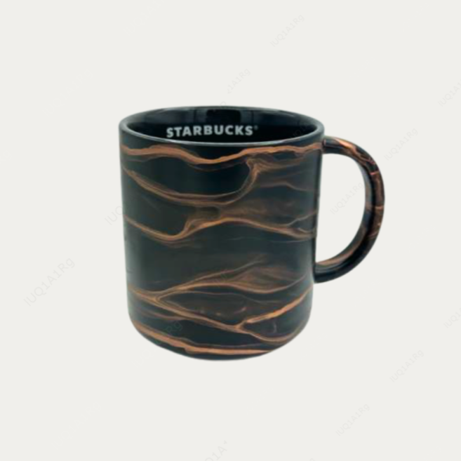 "Caneca de cerâmica preta fosca e redemoinho metálico de cobre e interior preto com logotipo Starbucks branco para bebidas quentes ou frias - 414ml.