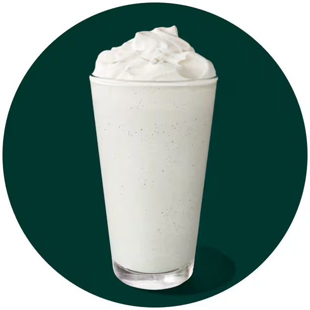 Frappuccino com base creme, calda de chocolate branco, leite e chantilly.
