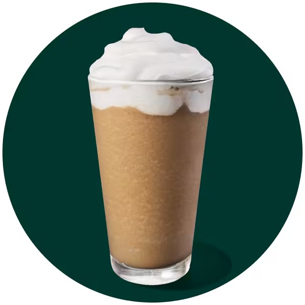 Frappuccino na base café, leite, xarope de caramelo, batido com gelo e leite, finalizado com chantilly e cobertura de caramelo. *O chantilly pode derreter durante a entrega.