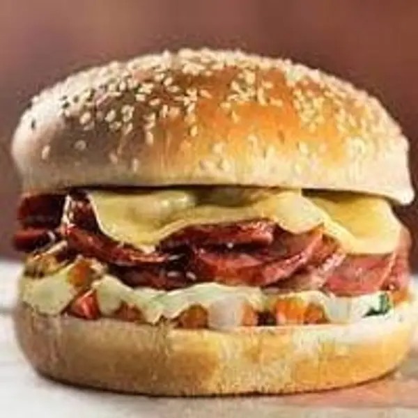 HambúRguer De 120g, Presunto, Duplo Queljo, bacon em fatias com queijo provolone, Cheddar, Batata Palha, Alface E Tomate, Malonesa Artesanal, Tudo Servido No PãO Quentinho.