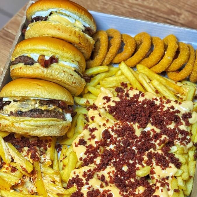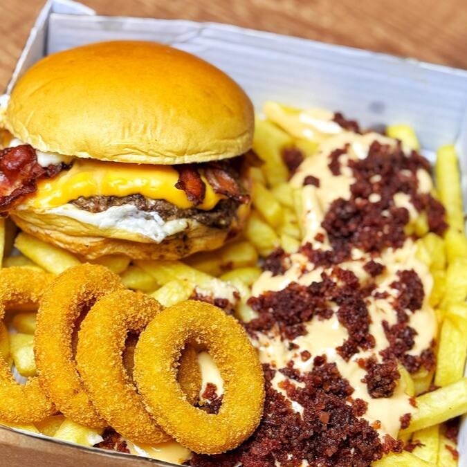 1 Supremo Bacon, 1 batata com bacon e cheddar, 4 anéis de cebola.