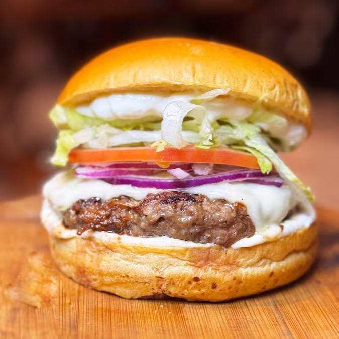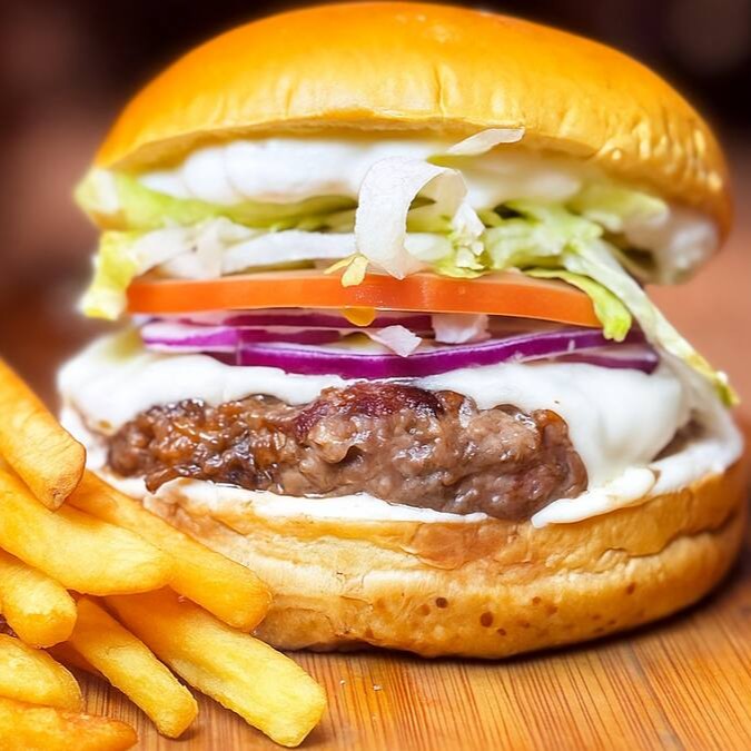 Pão brioche, hambúrguer 150g, creme cheddar, bacon e maionese da casa.