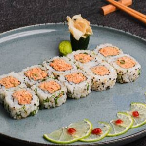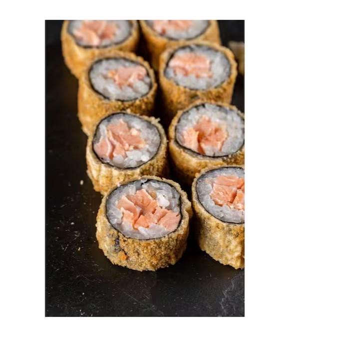 10 unidades de sushi quentinho, enrolado com salmão e cream cheese, empanado na farinha panko e frito. Acompanha gergelim e molho tarê à parte.