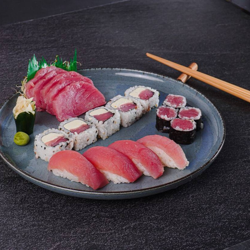 Combinado especial: 5 sashimi de atum, 5 uramaki atum, 4 niguiri de atum, 4 teka maki de atum.
