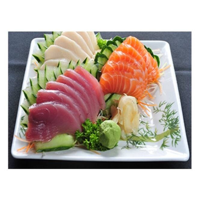 Combinado especial: 3 sashimi de salmão, 3 sashimi de atum, 3 sashimi de tilápia, 2 uramaki filadelfia, 2 niguiri de salmão, 2 niguiri de atum e 2 niguiri de tilápia.