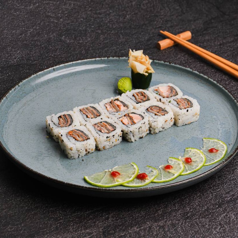 10 unidades de rolinhos de arroz recheados com salmão e cream cheese. Uma delícia leve e saborosa!