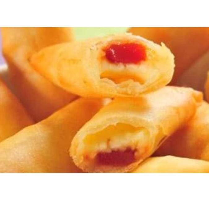 Rolinho Romeu e Julieta: massa crocante recheada com goiabada derretida e queijo cremoso.