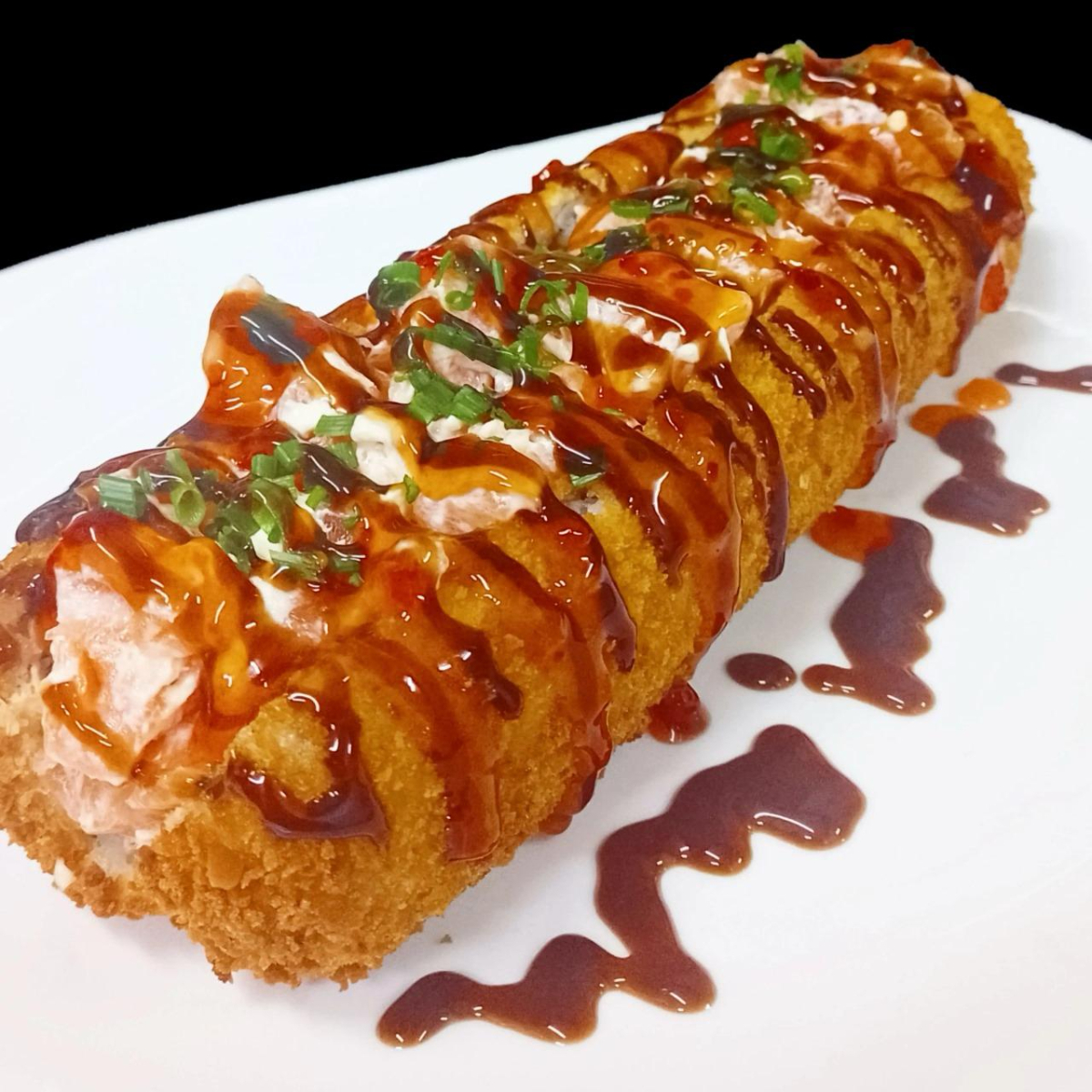 Lamina de salmão envolto de cream cheese coberto com molho especial agridoce de pimenta ( 4 unidades )
