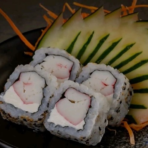 Arroz envolto na alga recheado com kani e cream cheease preço baixo promoção entregaràpida descontão off barato melhorpreço cupom preço baixo promoção entregaràpida descontão off barato melhorpreço cupom