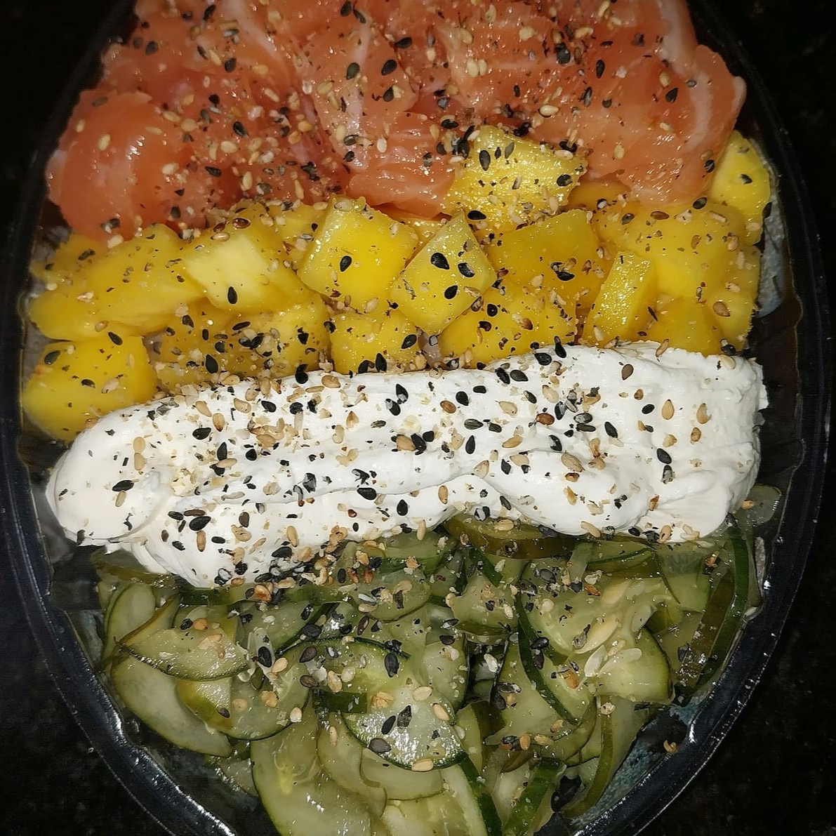 Arroz ,salmão em cubos,cream chease,pepino,cebola roxa,mix de gergelim preço baixo promoção entregaràpida descontão off barato melhorpreço cupom