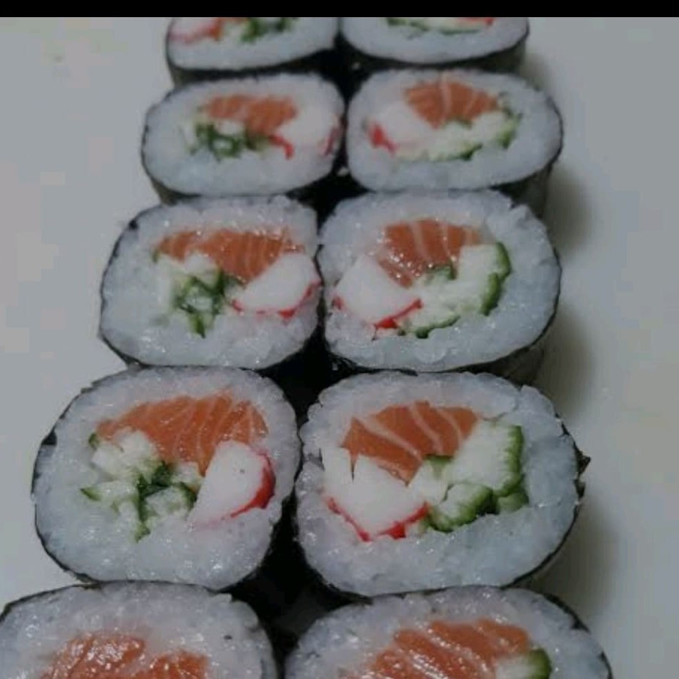 Arroz envolto em alga crocante,recheado com salmão,kani e pepino Preço baixo promoção entregaràpida descontão off barato melhorpreço cupom