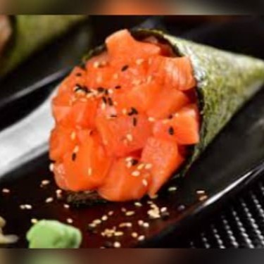Nori envolto com arroz recheado com salmão,finalizado com mix de gergelin torrado Preço baixo promoção entregaràpida descontão off barato melhorpreço cupom