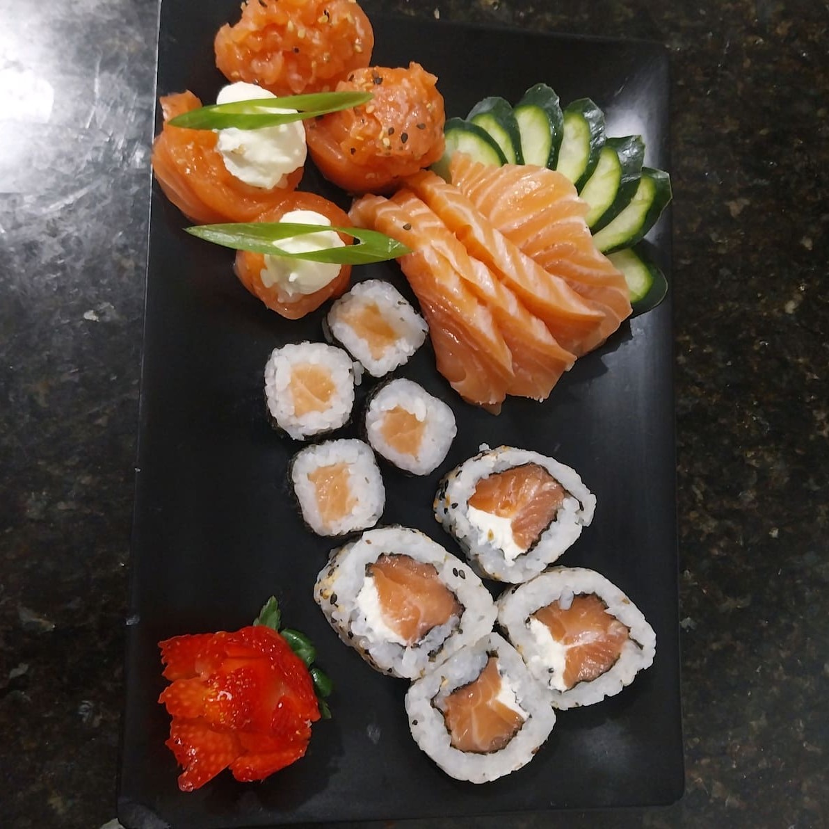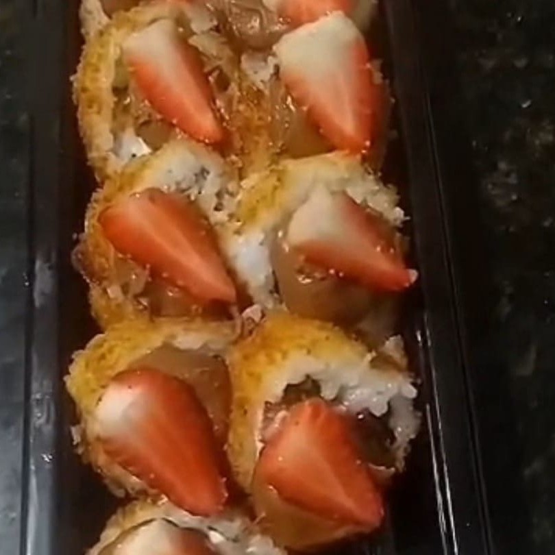 Arroz envolto na alga recheado com cream cheease ,morango e goiabada preço baixo promoção entregaràpida descontão off barato melhorpreço cupom preço baixo promoção entregaràpida descontão off barato melhorpreço cupom