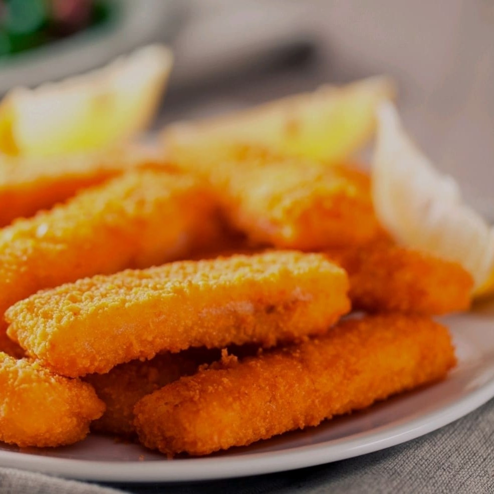 Tiras de tilápia empanadas e fritas,sequinhas e crocantes