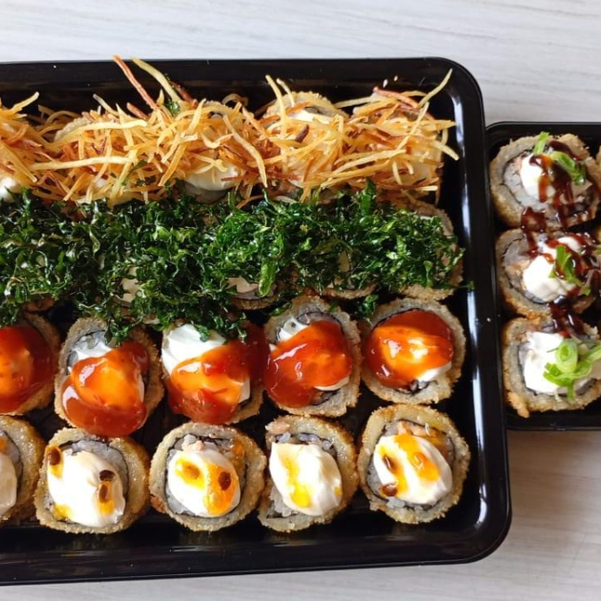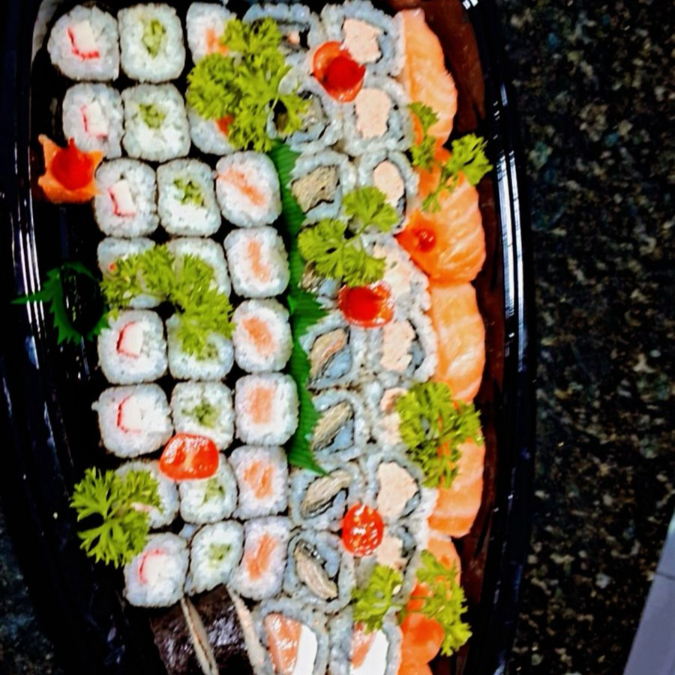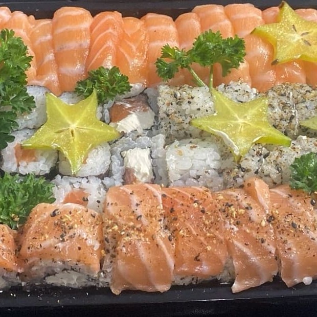 4 Uramaki Filadelfia 8 Uramaki skin 8 Uramaki Niromaki 8 Hosso de pepino 8 Hosso de kani 8 Hosso de salmão 6 Niguiri de salmão 5 Futomaki de patê de salmão 5 Futomaki de salmão