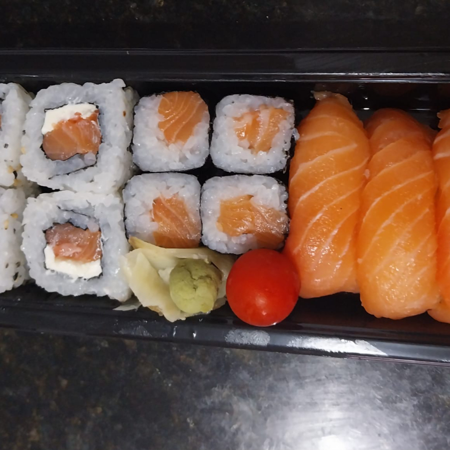 4 Uramaki Filadèlfia 4 Hossomaki Salmão 4 Niguiri Salmão
