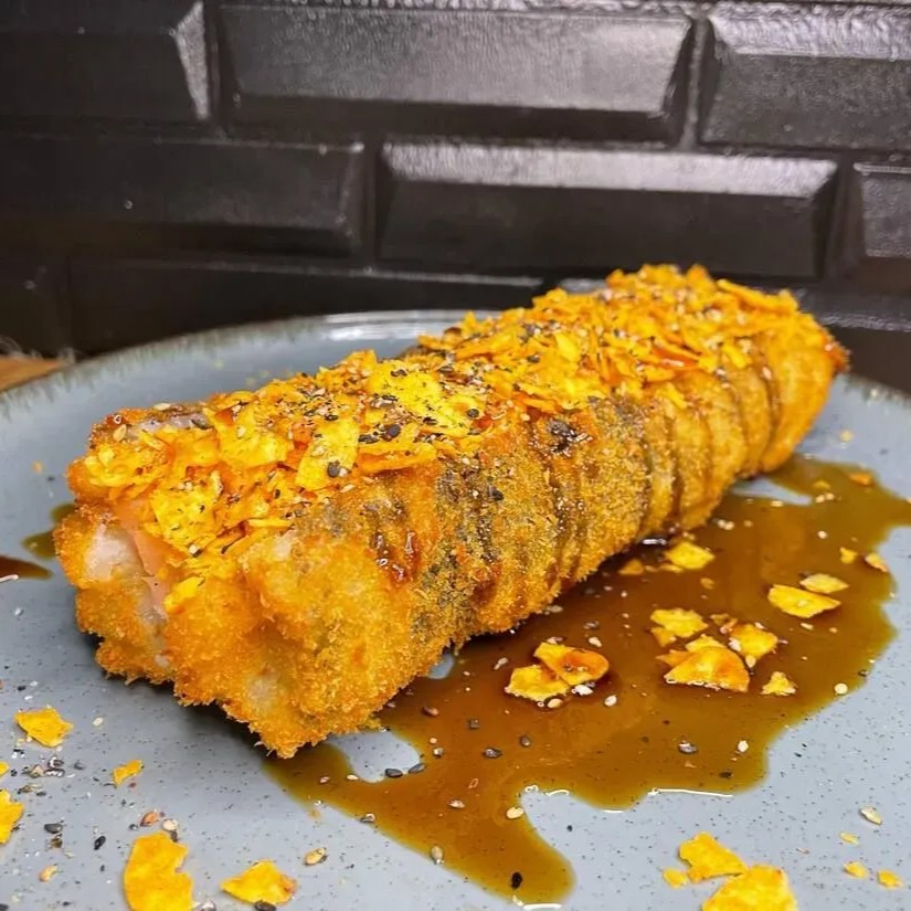 Muito mais sabor em cada mordida! Nosso Big Hot de Doritos é feito com alga nori, arroz temperado, cream cheese cremoso e cubos de salmão cru, empanado na panko e frito até ficar crocante. Finalizado com um toque especial de hondashi e uma cobertura generosa de Doritos crocante, entregando uma explosão única de textura e sabor. Diferente do hot tradicional, ele é bem maior e perfeito para quem busca intensidade.