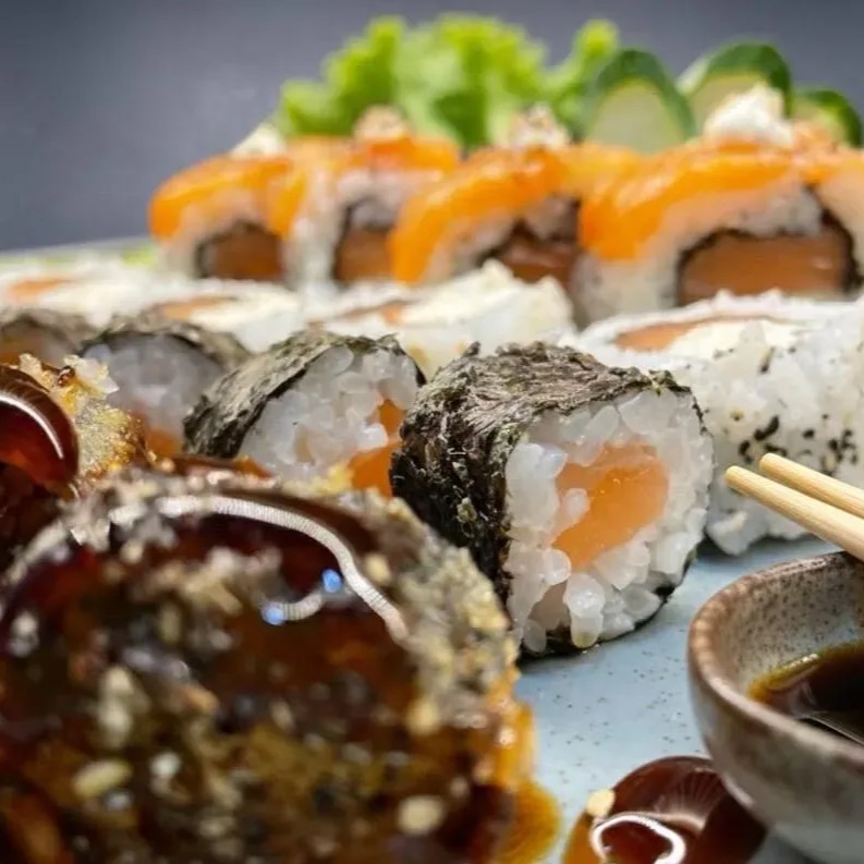 6 Sashimi de Salmão 4 Niguiri de Salmão 4 Joe sweet chilli 4 Hossomaki Kani 4 Hossomaki Pepino