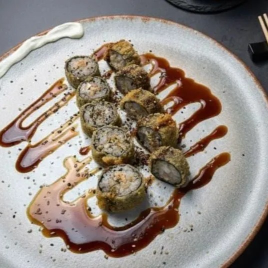 Uma explosão de sabor e crocância! Nosso Temaki Hot é preparado com salmão suculento, empanado na crocante farinha panko e frito até a perfeição. Servido cortado ao meio, recebe uma generosa camada de cream cheese cremoso, finalizado com um toque especial de molho tarê e gergelim para um sabor ainda mais irresistível. Perfeito para quem ama uma experiência quente e saborosa.