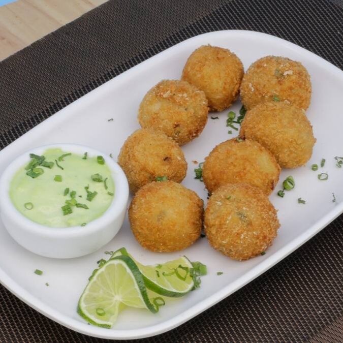 Bolinho de Peixe & Cream Cheese: 8 un .Crocantes por fora, macios por dentro! Deliciosa união de salmão, cream cheese e um toque de cebolinha.