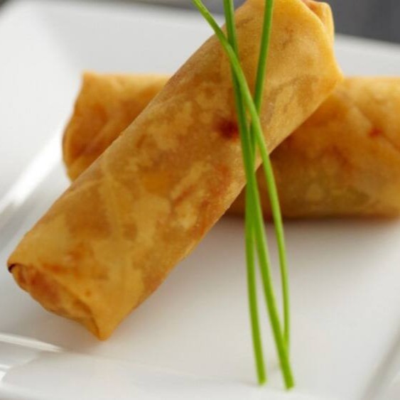 2 Rolinhos fritos, feitos com massa fina especial recheada com legumes. Acompanha molho especial da casa