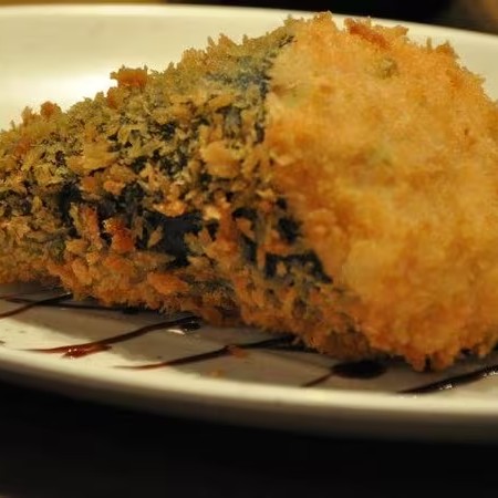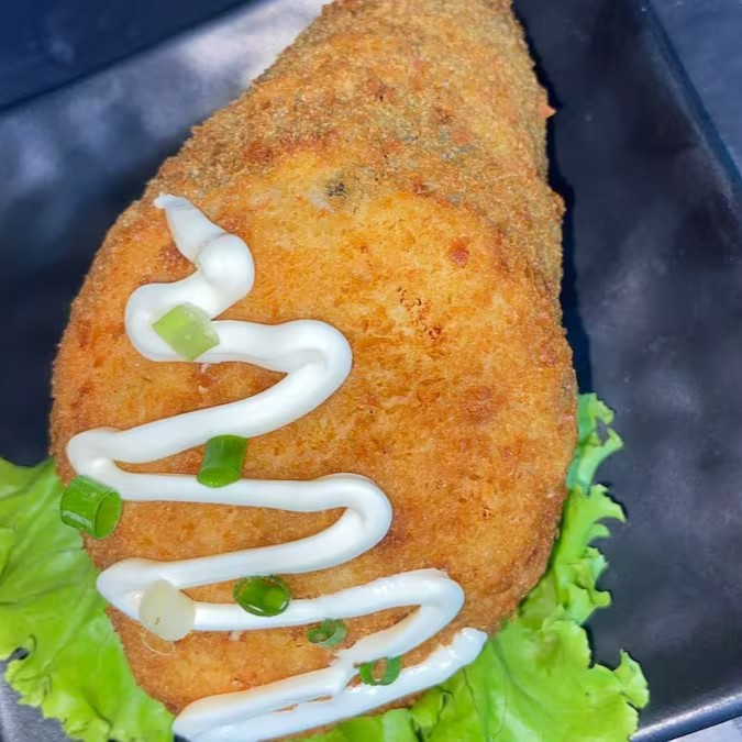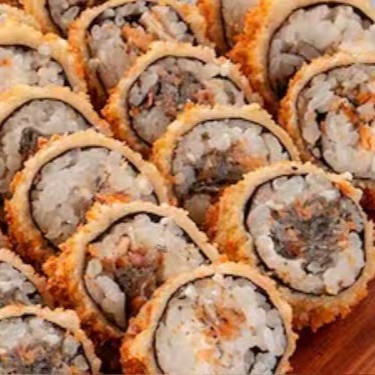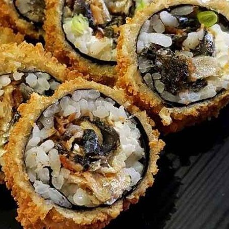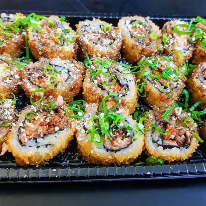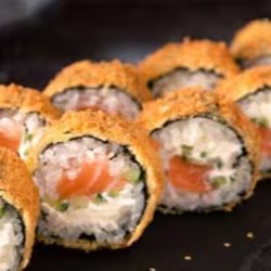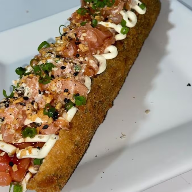 Nori crocante recheado com arroz japonês e salmão empanado e frito, finalizado com cebolinha fresca. Sabor intenso e textura irresistível!