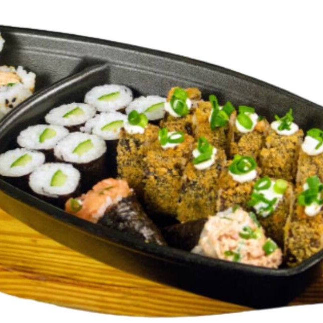 6 Hot Filadelfia, 6 Hot Camarão, 3 Niguiri de Salmão, 6 Hossmaki Kani, 6 Uramaki california