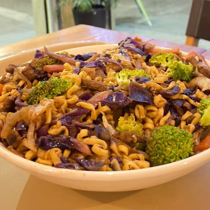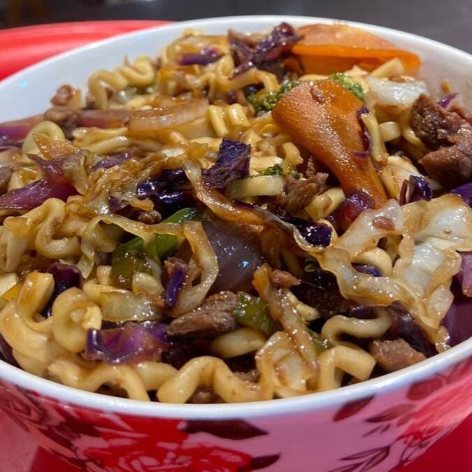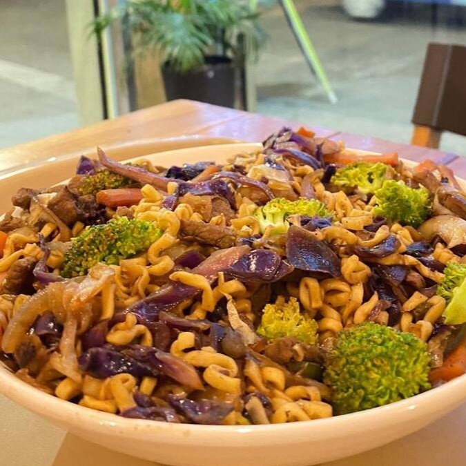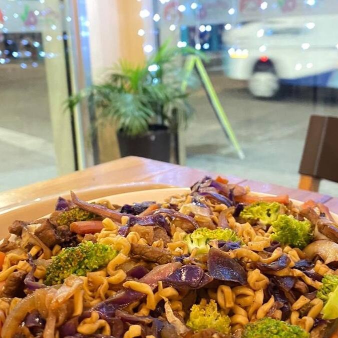 750gr De Yakisoba Feita De Macarrão Refogado Com Legumes e Carne e Frango, Temperados Com o Molho Da Casa a Base de shoyu