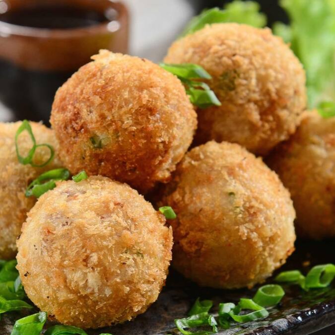 8 Bolinhos De Salmão Frito Misturado Com Cream Cheese, Cebolinha