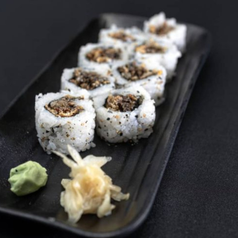Nori com arroz oriental, kani suculento, cream cheese cremoso e finalizado com cebolinha fresca para um toque irresistível!