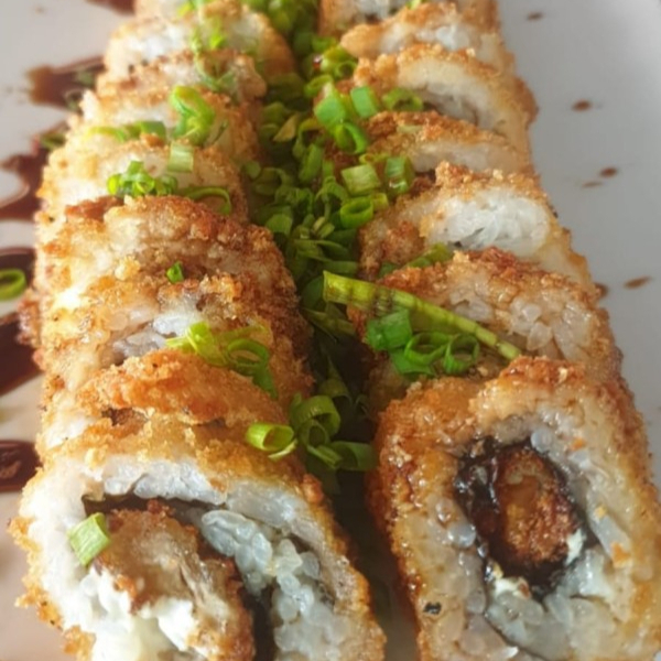 Nori, Arroz, Camarão Empanado e Frito, Cream Cheese Cebolinha
