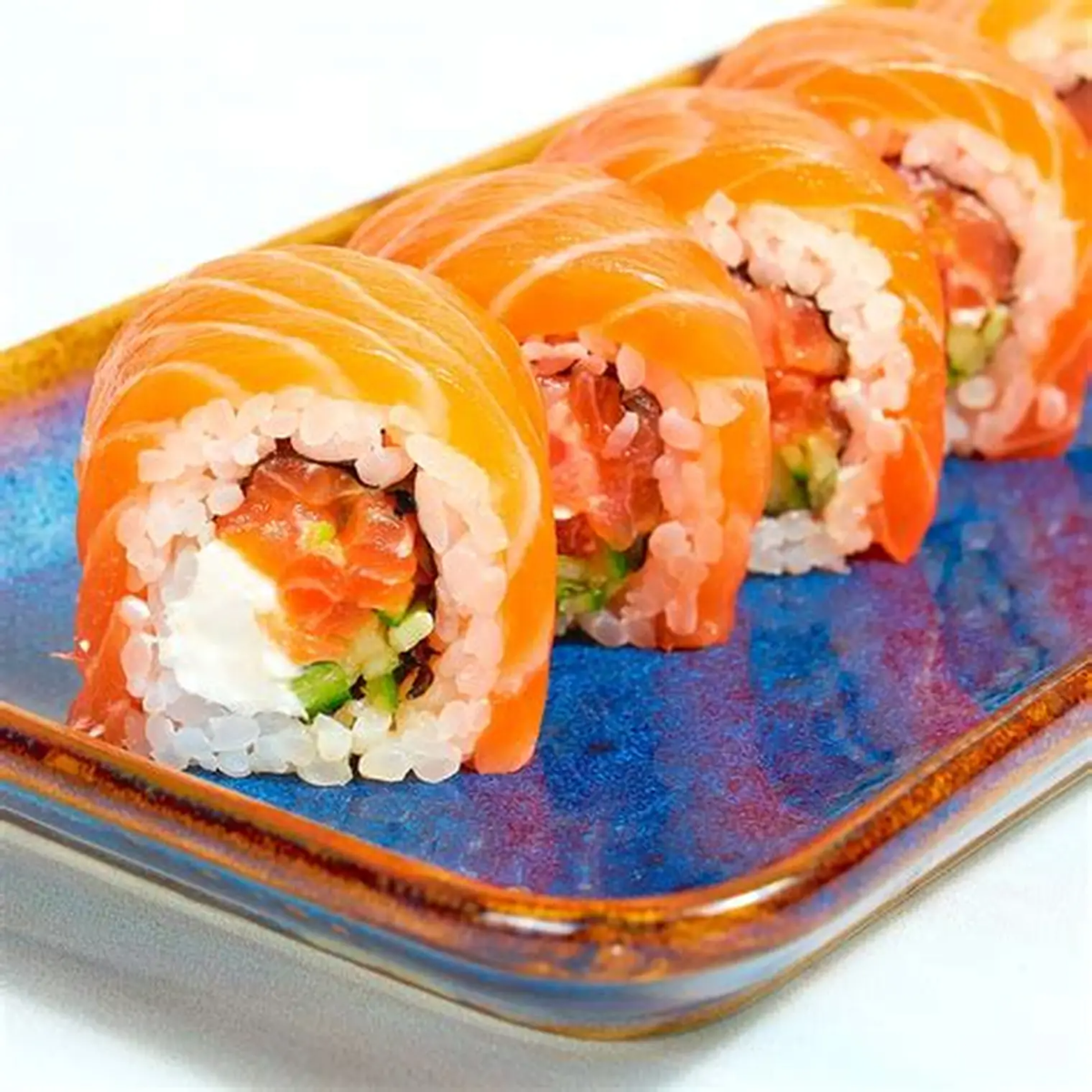 Nori crocante com arroz temperado, salmão fresco em cubos, cream cheese cremoso e cebolinha picada. Um clássico que nunca falha!