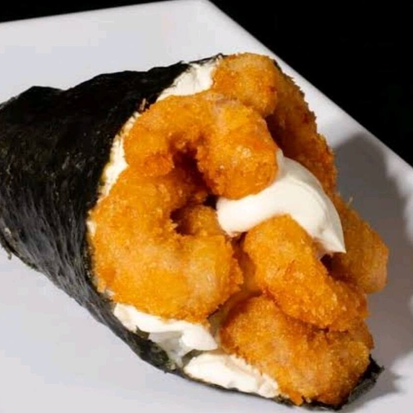 O Temaki Camarão Empanado com Cream Cheese é uma combinação irresistível de camarões empanados e crocantes, envoltos em uma camada cremosa de cream cheese. A crocância do camarão empanado junto à suavidade do cream cheese cria um equilíbrio perfeito de texturas e sabores. Ideal para quem gosta de contrastes deliciosos em cada mordida.