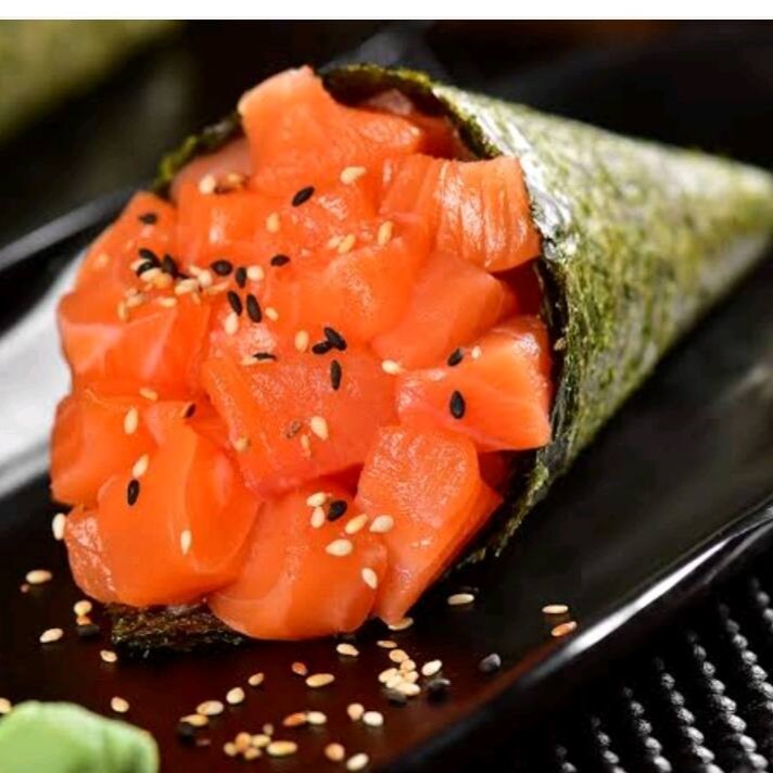 O Temaki Salmão Cubos 200g é uma opção robusta e saborosa, com arroz delicadamente espalhado na folha de nori. O recheio é composto por cubos de salmão fresco e suculento, combinado com cream cheese, oferecendo uma explosão de sabor cremoso e fresco. Ideal para quem busca uma refeição generosa e cheia de sabor.