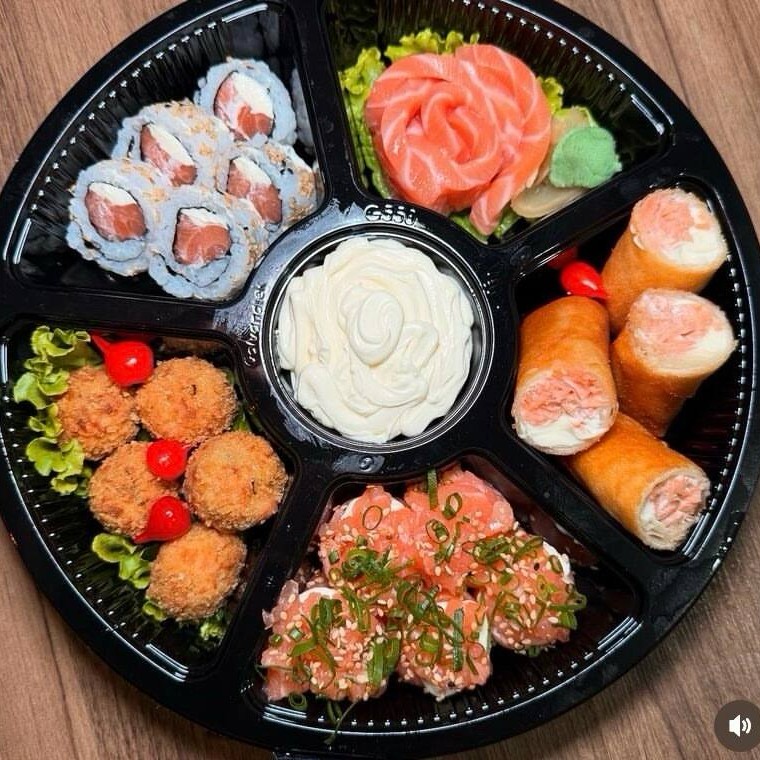 3 Filadélfia 3 Uramaki skin 6 sashimi de salmão 6 sashimi de tilápia 2 Joe 2 Niguiri de salmão 5 Hot Filadélfia