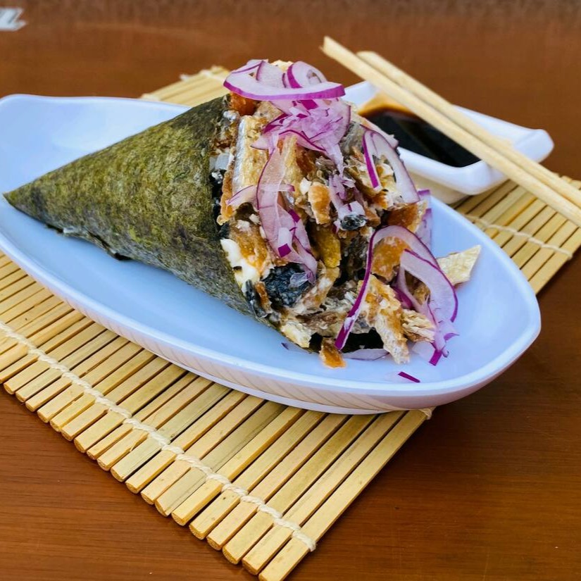 Temaki com Salmão Empanado e Cream Cheese