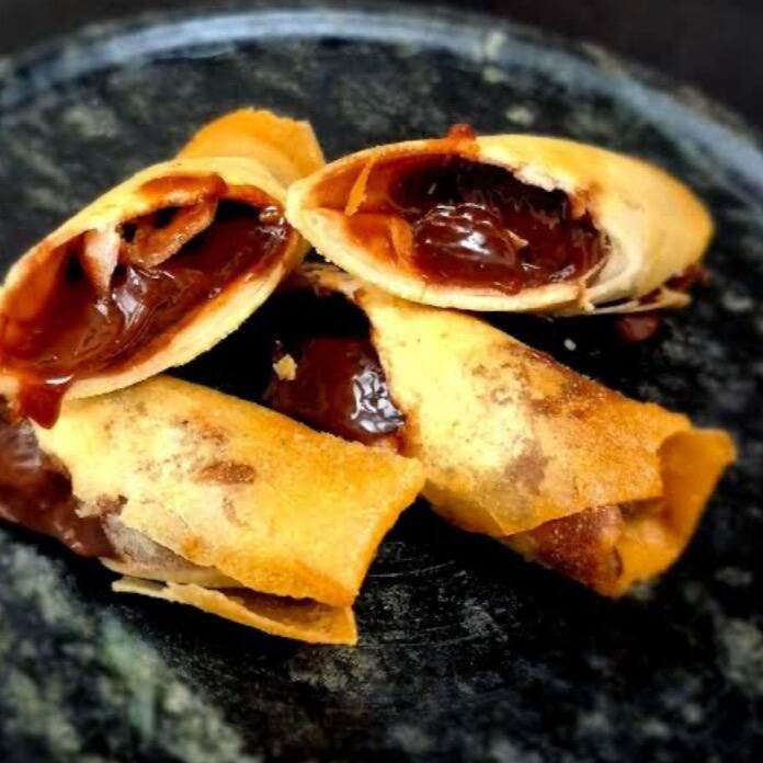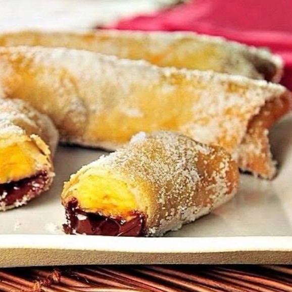 Banana com Brigadeiro na massa de Harumaki Frito