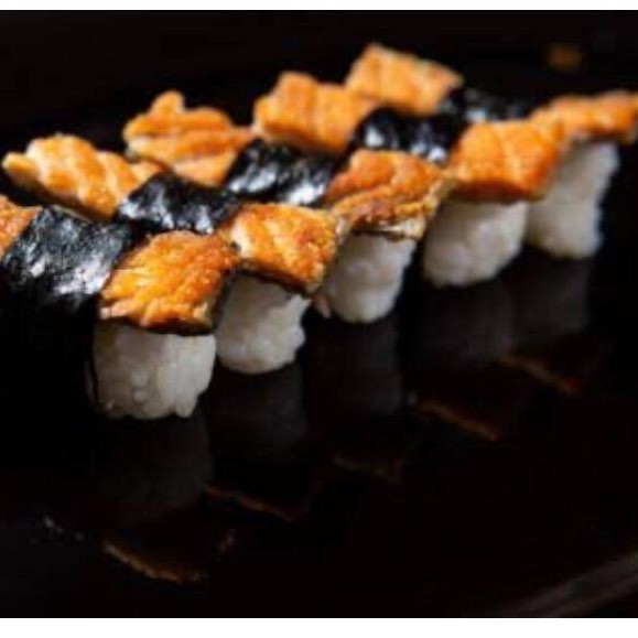Arroz espelhados na alga com recheio de salmão e cream chesse