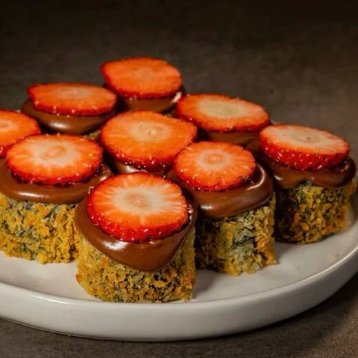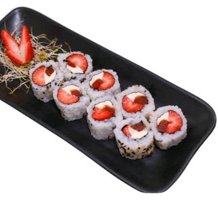 Arroz espalhados na alga com recheio de Morango e brigadeiro