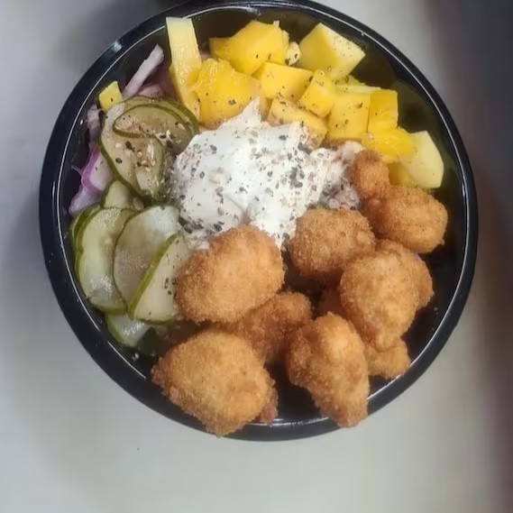 Nossa especialidade, o Poke Ticken, é uma experiência gastronômica única. O prato consiste em pedaços suculentos de frango empanado, crocantes por fora e macios por dentro, combinados com um arroz aromático e leve. Acompanha o sunomono, uma salada japonesa agridoce refrescante, e finas fatias de manga madura que adicionam um toque exótico e doce. A cebola roxa traz um sabor picante e equilibrado, enquanto o cream cheese oferece uma rica cremosidade. Para completar, um delicioso molho shoyu que acentua todos os sabores. Uma delícia inesquecível!