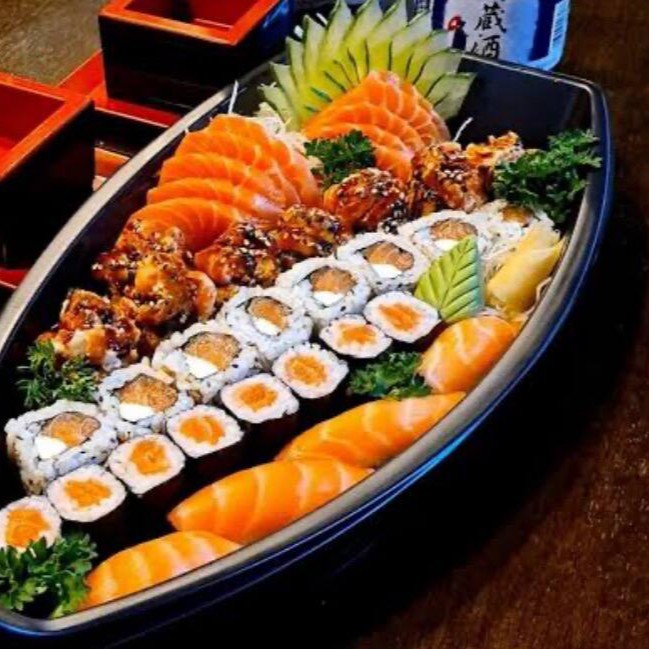 Barca Completa Salmão E Skin 40 Peças (serve Bem 2 Pessoas)